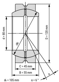 La rótula radial GE80ES, que requiere mantenimiento, tiene un par deslizante de acero/acero y es adecuada para cargas estáticas y de impacto elevadas. Las dimensiones principales corresponden a DIN ISO 12240-1 - serie de dimensiones E.