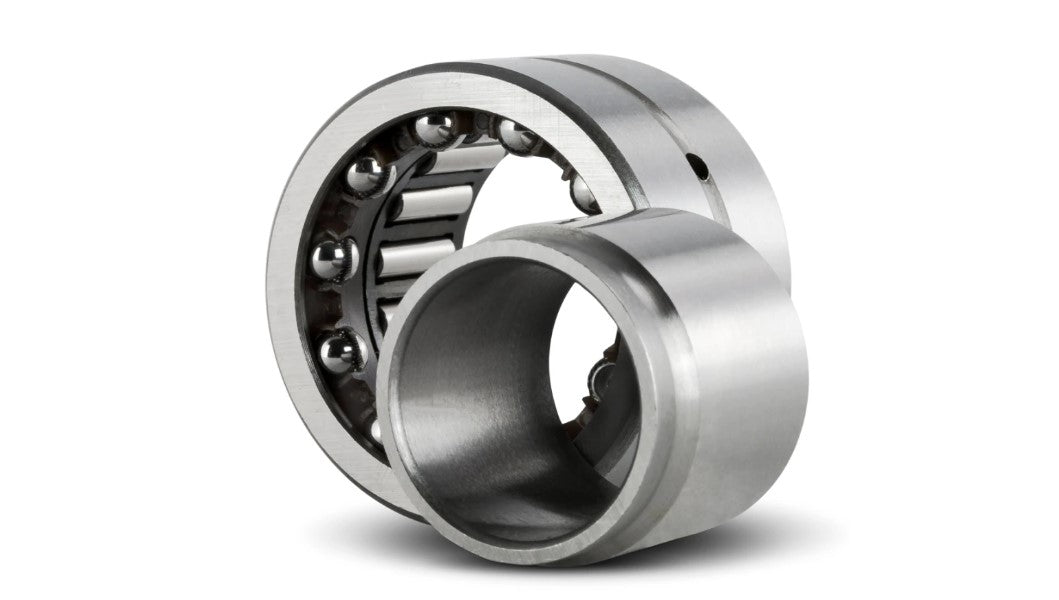 El rodamiento de agujas combinado NKIA5912 combina las ventajas de un rodamiento de agujas radial con las de un rodamiento de bolas de contacto angular radial y puede cargarse radial y axialmente en una dirección. Está provisto de un aro interior y requiere poco espacio de instalación radial. Las dimensiones principales corresponden a DIN 5429-2.